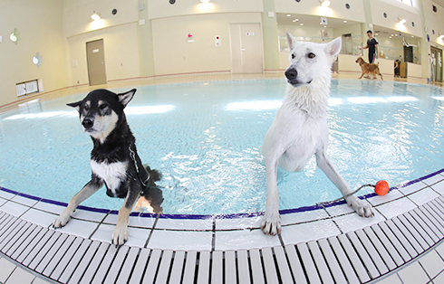 活性水をふんだんに利用した、ワンちゃん専用の室内温水プールです。